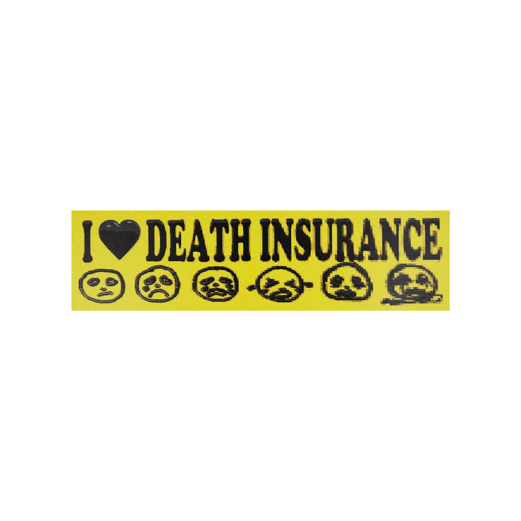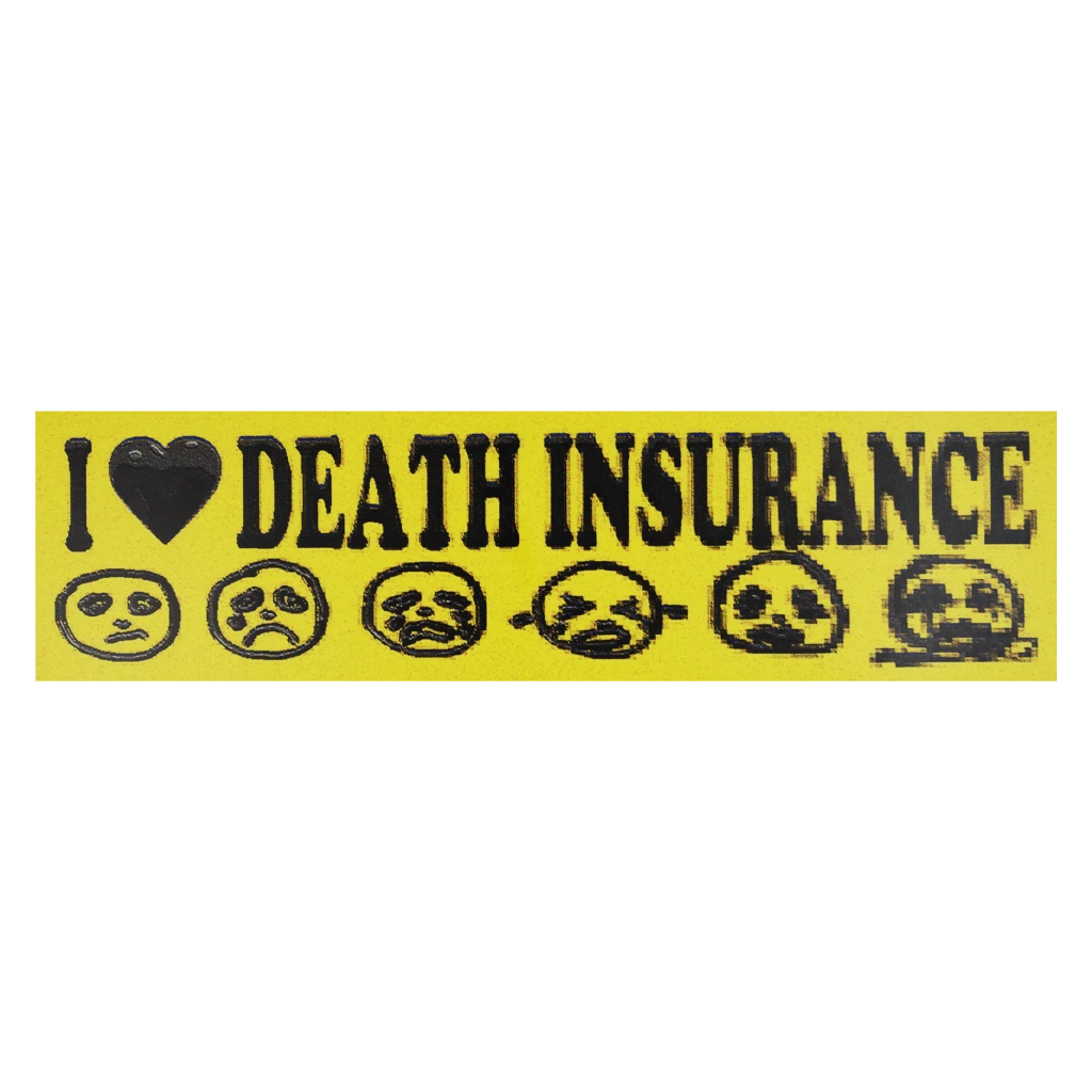 Show everyone on the road how cool and underground you are with the death insurance bumper sticker. Designed by death insurance.