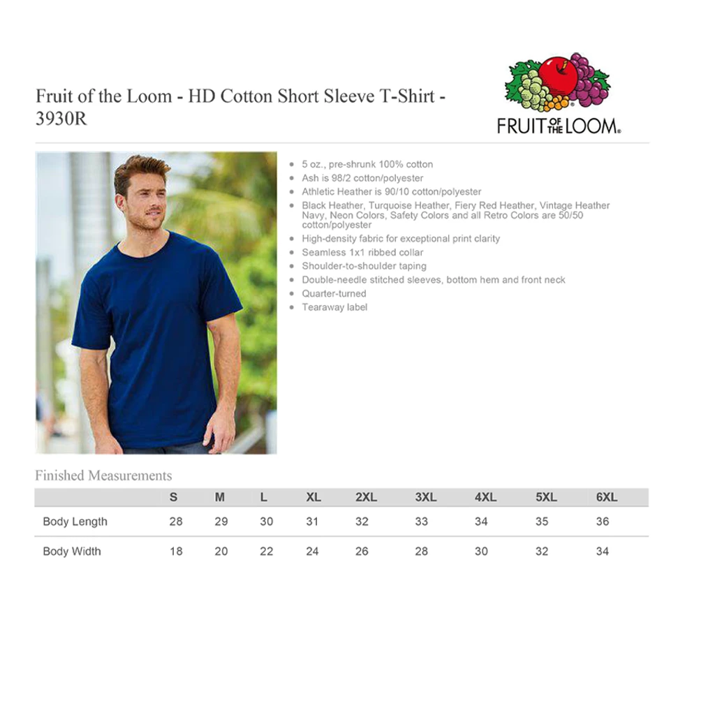 Printed on Fruit of Loom 100% Cotton