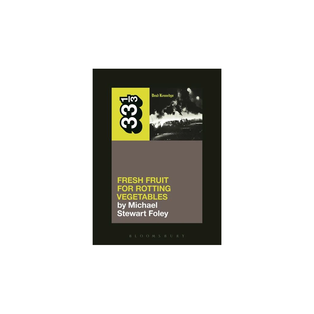 “In his book on Dead Kennedys’ 1980 debut, Fresh Fruit for Rotting Vegetables, historian Michael Stewart Foley traces the origins of the radicalized California punk band’s political views by chronicling all the turmoil in the late 1960s and into the 1970s, as the hippie ideal curdled into the Me Generation … what truly separated the Kennedys from their peers-and what transformed their angst into something powerful and useful-was the humor with which they tackled current events, as singer Jello Biafra in particular understood that a wicked sense of irony was the only weapon against a world that had grown so insane.” – Stephen M. Deusner, Pitchfork